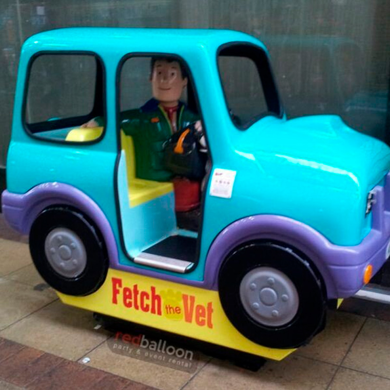 Authentic Character Interactive Design Features a 3D veterinarian figure inside a brightly colored medical transport vehicle for immersive role-play fun.