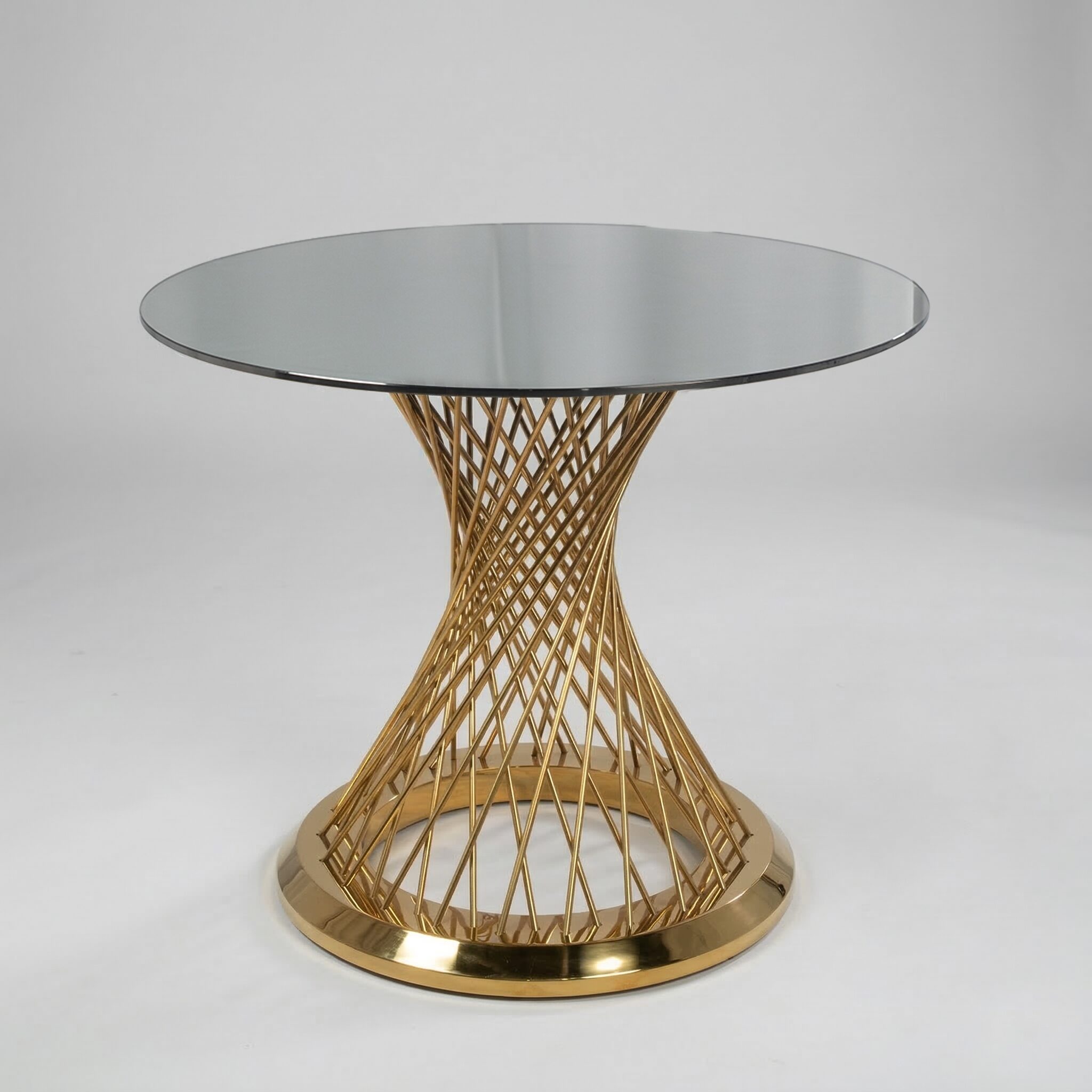Make a striking architectural statement at your next event with our Gold Hourglass cocktail table, available exclusively at Red Events Rentals. This designer table features a breathtaking spiral-wire base in a polished gold finish, creating a modern ‘hourglass’ silhouette that serves as a piece of art in itself.