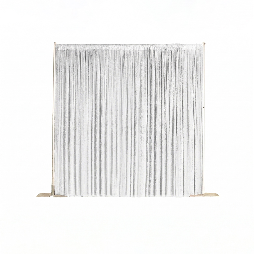 Don’t let a venue’s existing walls limit your vision. Our White Pipe and Drape system is a designer’s favorite for completely softening and brightening a space. Whether you are looking to create a romantic ceremony backdrop, a clean “blank canvas” for a corporate brand, or a high-end lounge area, this draping system provides an immediate upgrade to any room’s aesthetic.